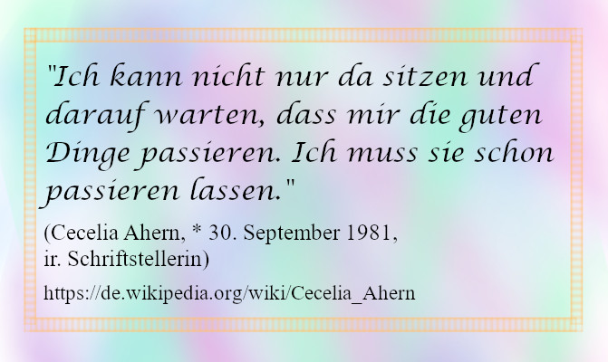 Mal davon abgesehen, dass wir nur durch Eigeninitiative die Dinge ins Rollen bringen und das Glück damit finden können, ist dieser Spruch auch in der Schriftstellerei sehr weise.