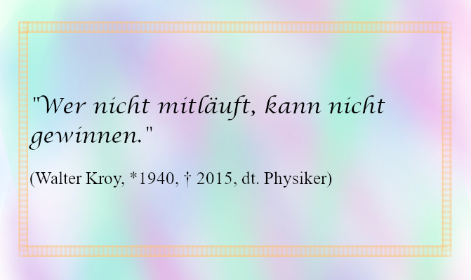 Ich weiß leider nicht, ob er ein Läufer war. Das Zitat scheint sich darauf zu beziehen. Oder dachte er an Mitläufer, die sich dem Stärkeren anschließen? Ich hoffe, dass es ersteres ist, weil es für den Mut der Menschen sprechen würde. Ich will es so verstehen: Wer nicht an einem Rennen teilnimmt, kann es auch nicht gewinnen. Derjenige hat automatisch verloren. Auf diese Weise finde ich seine Aussage inspirierend, weil es sich auf alles beziehen kann. Wer nicht anfängt, seinen Traum zu leben, wird nie wissen, wie sein Leben hätte aussehen können. Er wird immer der verpassten Chance hinterhertrauern. Für mich bedeutet es, dass ich auf dem richtigen Weg bin. Ich bin keine Läuferin. Ich bin eine Schriftstellerin und mein Sieg ist es, wenn ich meine Geschichten schreiben kann und sie gelesen werden und Freude bereiten.