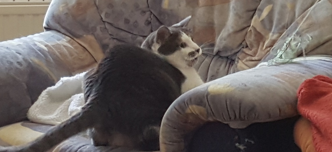 Nicht, dass meine hochgeschätzten Follower glauben, ich würde nur im Schlaf jagen und kämpfen. Bekommt es nicht mit der Angst zu tun, aber ja, das bin ich auch. Ich muss nicht immer der souveräne Kater sein, der sein Personal fest im Griff hat. Wobei, allein, dass mein Personal genau weiß, wann ich meine Fähigkeiten trainieren will, zeigt doch, wie gut ich die beiden erzogen habe.