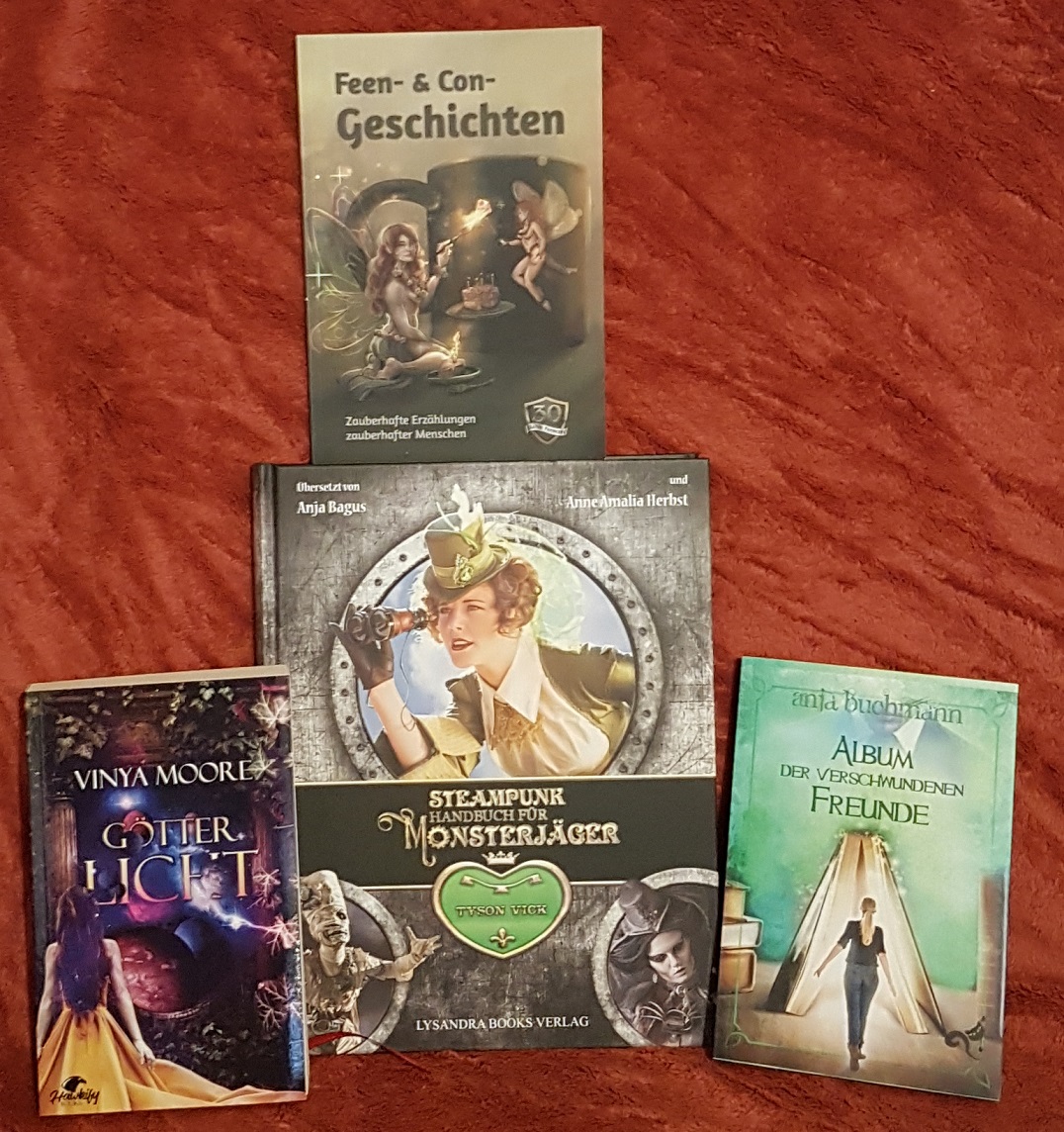 Es ist leider nur ein schmales Bändchen, aber es brachte mich oft zum Schmunzeln, weil ich mich in der Welt von Cons, Autoren und Verlegern mittlerweile ganz passabel auskenne. Ich hatte richtig Spaß, die Kurzgeschichten zu lesen, und ich bin froh, dass ich mir ein Exemplar gesichert habe. Es ist eine tolle Erinnerung an meinen Besuch der FeenCon 2019.